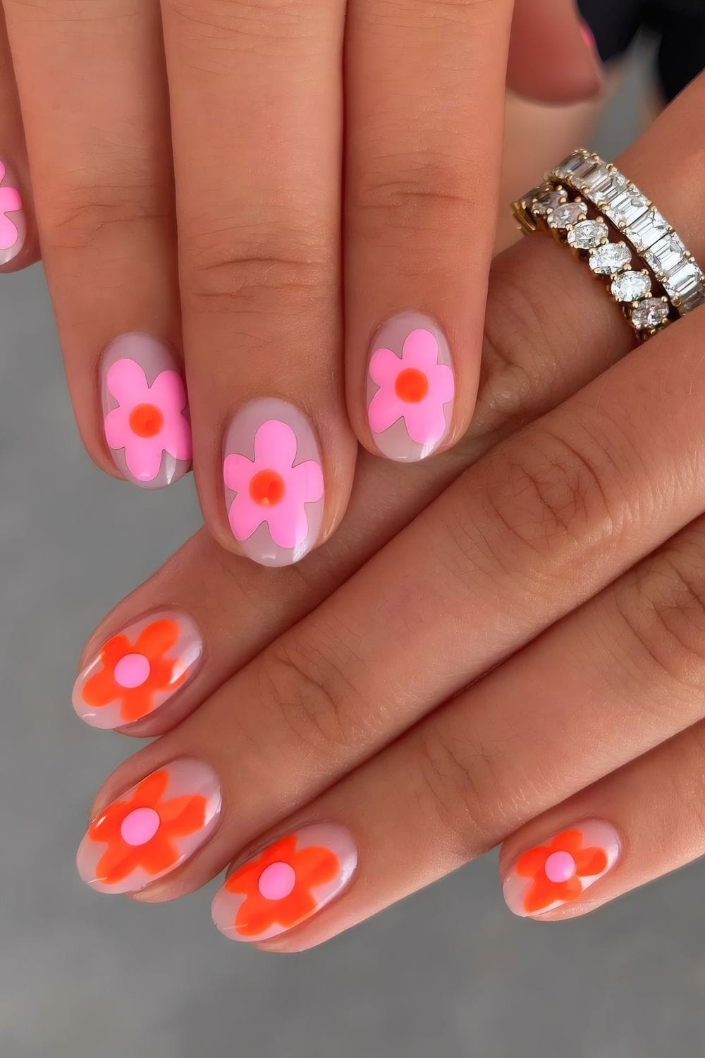 Big nails, tiny flowers—it just works. Tried this with neon daisies and got compliments from my Uber driver.