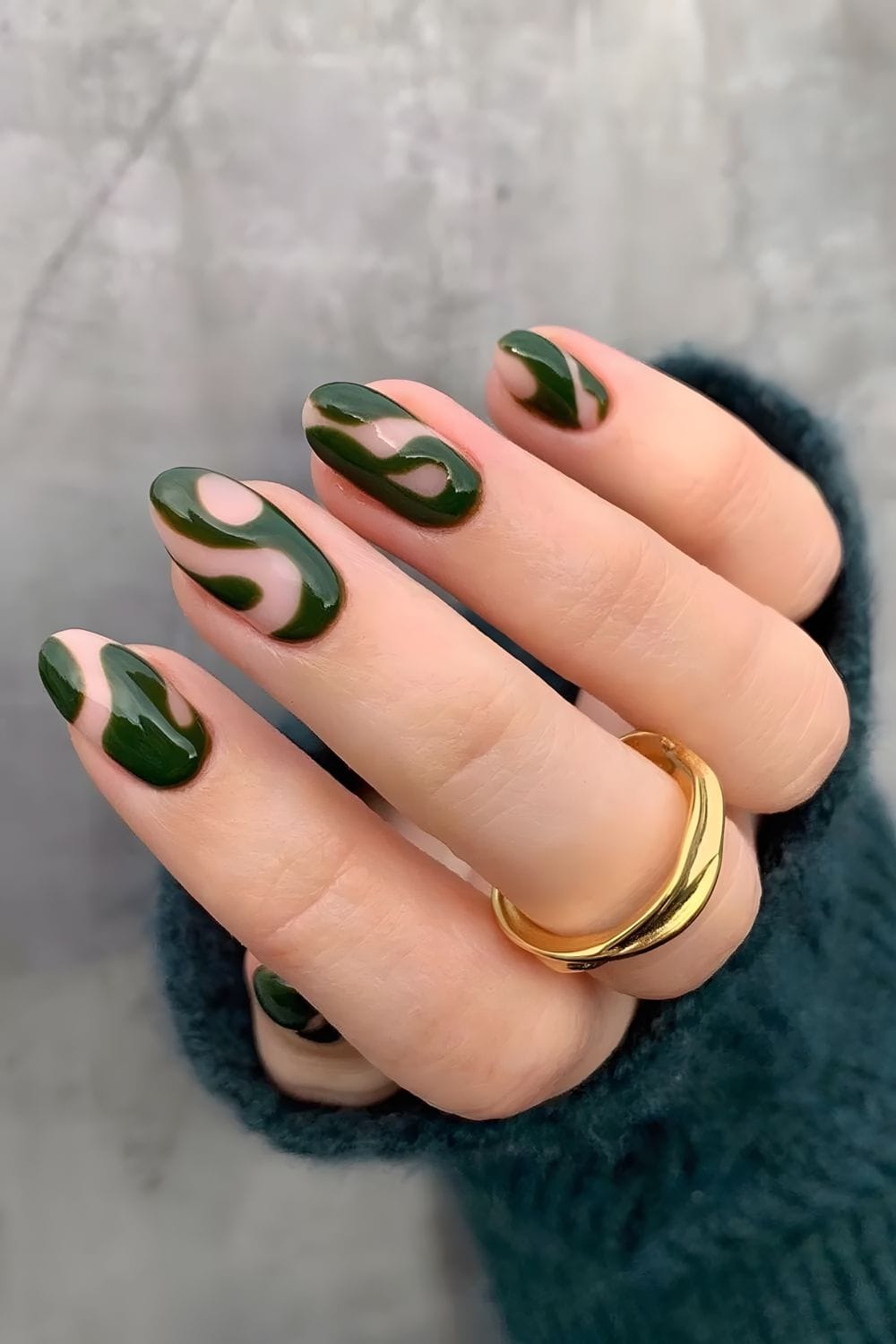 28. Dark Green Nails with Abstract Swirls
